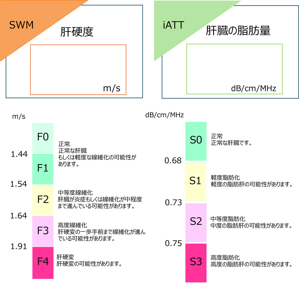 肝臓の硬さ(SWM)肝臓の脂肪化(iATT)計測結果シート